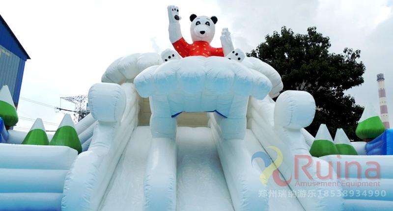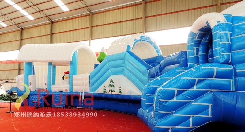 2、環(huán)保材料 冰雪世界充氣城堡用一等環(huán)保夾網(wǎng)PVC為產(chǎn)品原材料進(jìn)行產(chǎn)品生產(chǎn),無毒、無危、無刺激性,對(duì)皮膚不會(huì)引起過敏反應(yīng),尤其是小孩子。