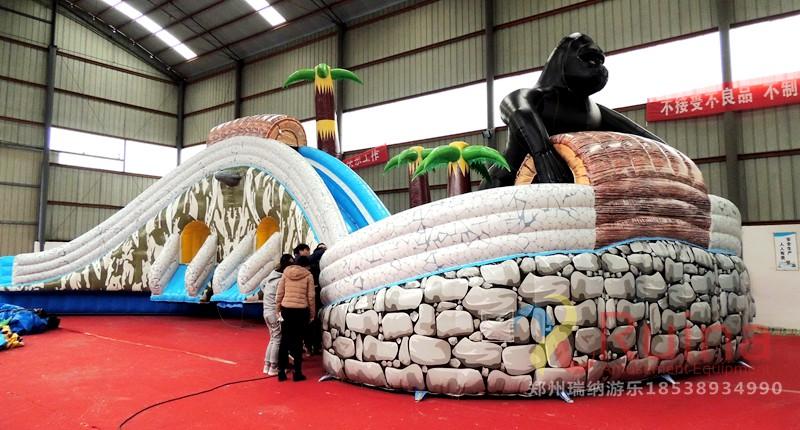 樂(lè)園中的三個(gè)黑色大猩猩造型被設(shè)計(jì)的異常逼真,讓游客忍不住會(huì)有前去和它合影留念的想法?;莸念伾珓t采用了和大山、巖石一樣的顏色,搭配及其合理,把花果山的造型形象的表述了出來(lái),亦幻亦真,擁有如此優(yōu)美意境的一款全新移動(dòng)水上樂(lè)園,相信將會(huì)給周?chē)瓮娴娜巳簬?lái)一種怦然心動(dòng)的感覺(jué),讓他們會(huì)產(chǎn)生一種前去游玩一番的沖動(dòng)!