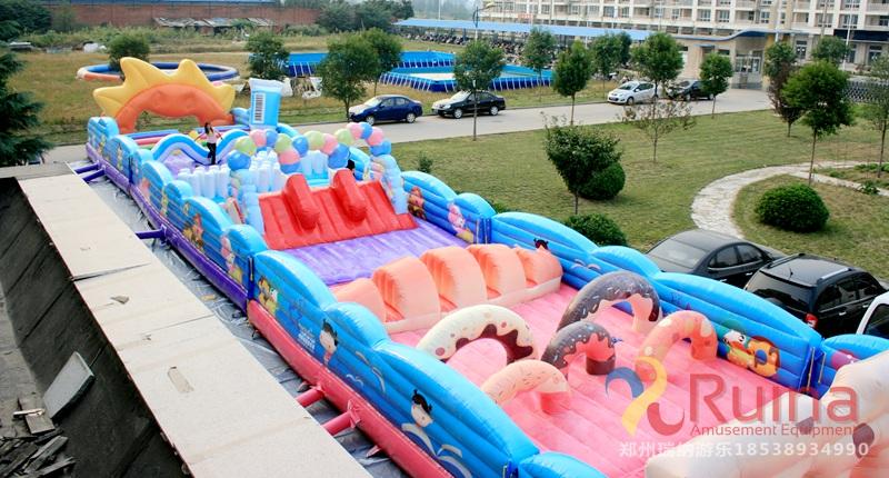 娛樂競技類的充氣游樂設(shè)備,關(guān)卡迥異,玩法豐富,可以人以體驗鉆、爬、騎、沿、穿、滑、跳等動作,寓教于樂,何樂而不為?