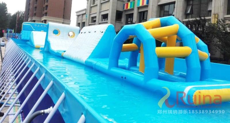 水上沖關(guān)所采用的支架水池是用高強(qiáng)度的環(huán)保PVC和國(guó)標(biāo)無(wú)縫鋼管組成的,可以極大地保證游客的嬉水安全。每個(gè)支架水池都配有自動(dòng)化凈水一體機(jī),不間斷地進(jìn)行水質(zhì)處理,保證水質(zhì)安全,讓游客更放心。歡樂(lè)盛夏,水上沖關(guān)等您來(lái)挑戰(zhàn)。